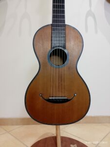 Cette guitare ancienne a été fabriquée il y a bientôt deux siècles et elle est très bien conservée . Elle est en exposition dans notre