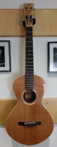 Guitare Archtop du luthier Vincent Engelbretch de Forcalquier. Format Les Paul. Bois massif, épicéa pour la table et acajou pour le dos. Un micro LRBaggs