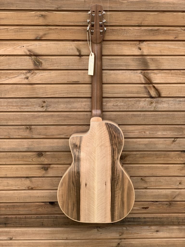 Vendu - commande possible Nicolas Gréaux Modèle « Minouche » 2900€ Partage : Fiche technique État :Parfait Table : Cèdre Corps :Noyer Manche :Noyer Touche :Cerisier Chevalet :Cerisier Étui :oui